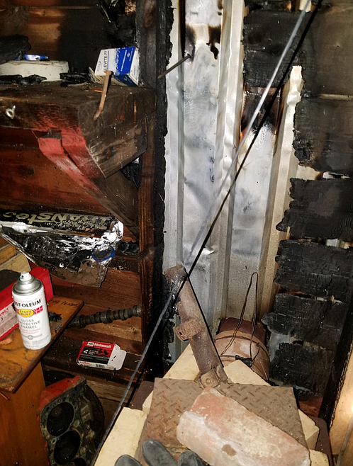 “Structure damage consisted of a wall being completely burned through between two studs and extended into the rafter area of the gable,” Aamodt said. “The vehicle parked in the garage only had light smoke damage.”