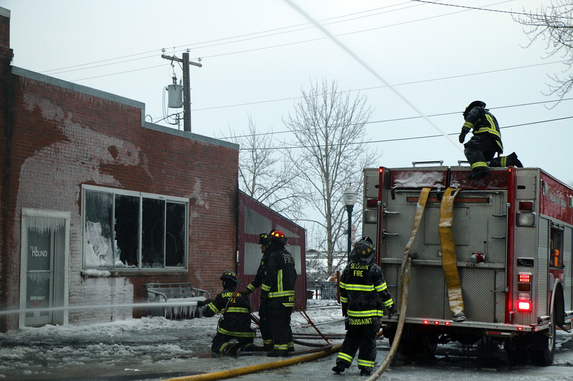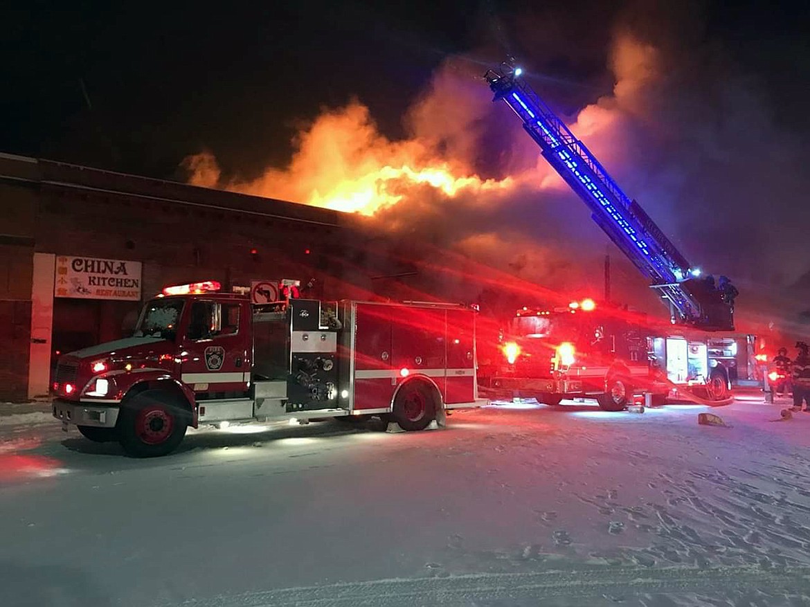 Firefighters from Selkirk Fire Rescue & EMS and fire district throughout Bonner County and part of Kootenai County engaged in an offensive attack, but had to resort to defensive measures at approximately 4 a.m., after concerns arose about the stability of the century-old structure housing Headlines Salon, The Hound restaurant and pub, Sandpoint Tattoo & Body Piercing, Sandpoint Chocolate Bear, China Kitchen and the former Ol’ Red’s Pub.