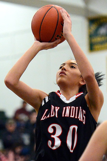 Browning's Dulci Skunkcap (30) gets an open look at the basket against Libby at Whitefish High School on Friday. (Casey Kreider/Daily Inter Lake)