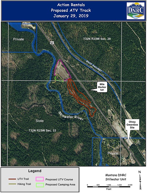 Action Rentals is seeking a land use license to develop the track with associated trails and a camping area on 11.5 acres of state trust land in the Stillwater Unit. The proposed site is an old satellite log yard once used by American Timber in the 1980s and 1990s, according to the initial proposal with the DNRC.