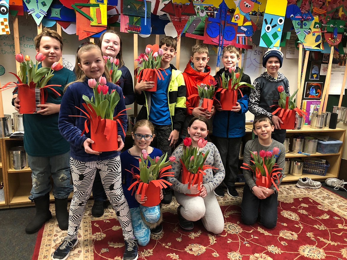 The young nature stewards coaxed pink and red tulips into blooming early, just in time to be presented to residents of a local assisted living facility for Valentine's Day.