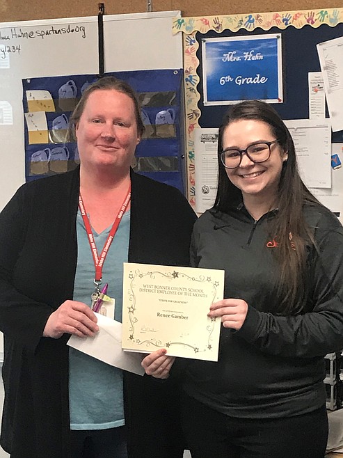 The classified employee of the month for January is Renee Gamber, who works as a classroom paraprofessional at Idaho Hill Elementary. Renee has been with West Bonner County School District for about six years. Gamber was nominated by a colleague who noted that she is always putting the kids first and goes out of her way for all students.