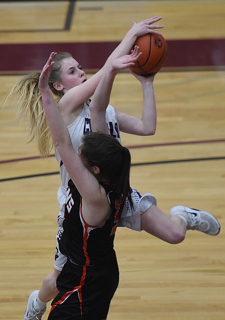 Much like they did the last time these two teams met in Arlee, the Lady Vikings started out with a hot shooting touch in contrast to the Scarlet squad, which seemed sluggish as if mired in a mud of molasses. Charlo splashed a trio of triples in the first frame, a pair by Teaira Truman that sandwiched a solo by Kaitlin Cox as the Lady Vikings lead surged into double figure territory. Scarlet Louetta Conko-Camel would break the ice for Arlee with a timely triple of her own, followed by a free throw in another scoring sequence as part of a counter that kept them within nine after the first frame.