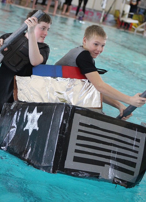 As did the PMS sixth-graders on Feb. 7, advisory team members used a prescribed list of supplies to construct a boat — with the intent of each of them to stay afloat during 50-yard races at MVAC. The students, with direcion from their advisers, used cardboard, glue, spray paint, permanent markers and the key ingredient — duct tape, It was a project as part of the STEAM program, which is Science, Technology, Engineering, Arts and Math.