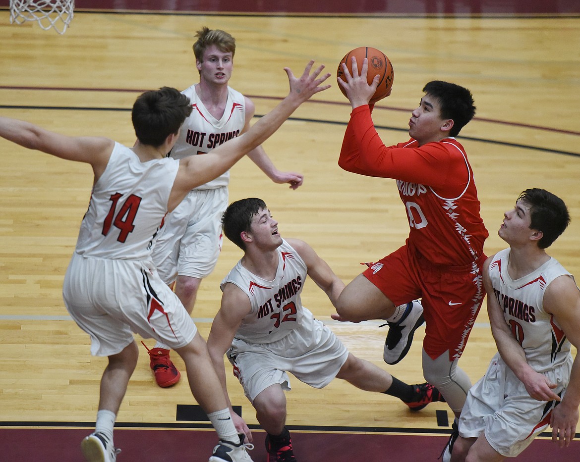 HOT SPRINGS – Jack McAllister 16(4r), Tyler Knudsen 12, Tyler Carr 10, Luke Waterbury 4, Brandon Knudsen 4, Kyle Lawson 3(3r,2s), Russel Morton 2, Benedict “Bobo” Waterbury 1 0-1 2, Josh Maier 2(1s), noID (1a).