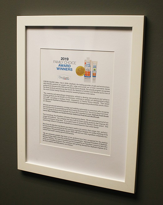 Oxyfresh produces toothpastes, mouthwashes, cleaners, deodorizers, soothing dental gels and other USA-made items that promote health and nutrition in people and their animals. The company just received honors for its pet dental gel toothpaste, pet dental water additive and pet deodorizer from the Family Choice Awards, which recognizes the best products, services and resources for all members of a family including pets.