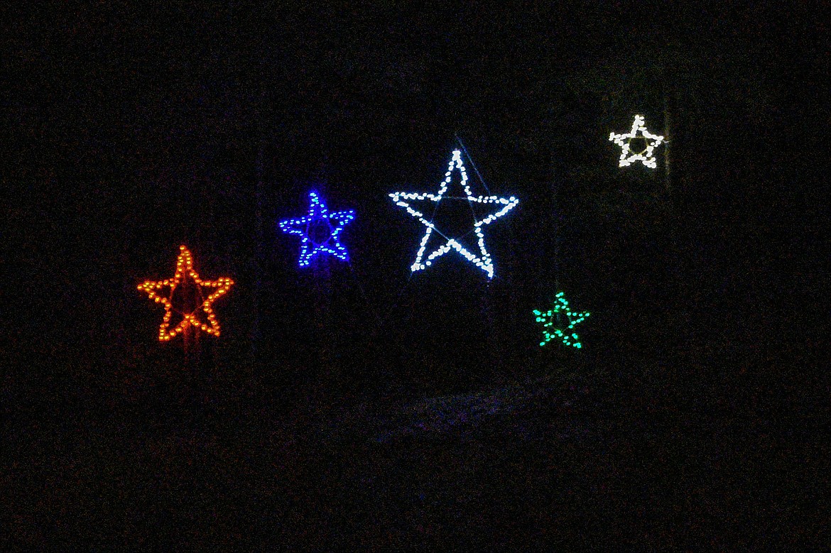 As an example, she noted the Most Unique category — won this year by Chuck and Chris Ekstedt for their small constellation of stars hanging on the hillside above Callahan Creek. While the display had only a few strands of lights, the creativity behind it really showed.