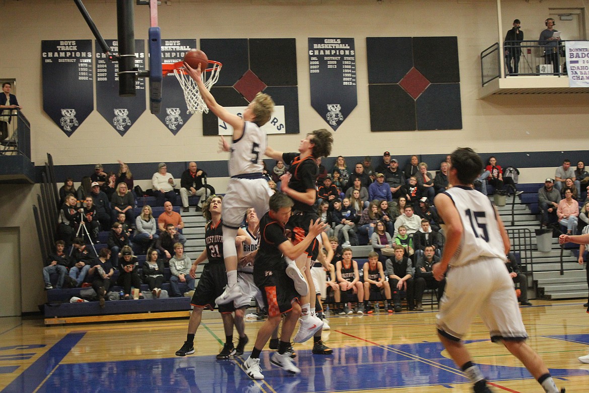 BONNERS FERRY — The Badger boys basketball team began the new year with a league win against Priest River on Jan. 4. The team went to halftime break ahead 40-23, and finished the evening winning the game 82-54.