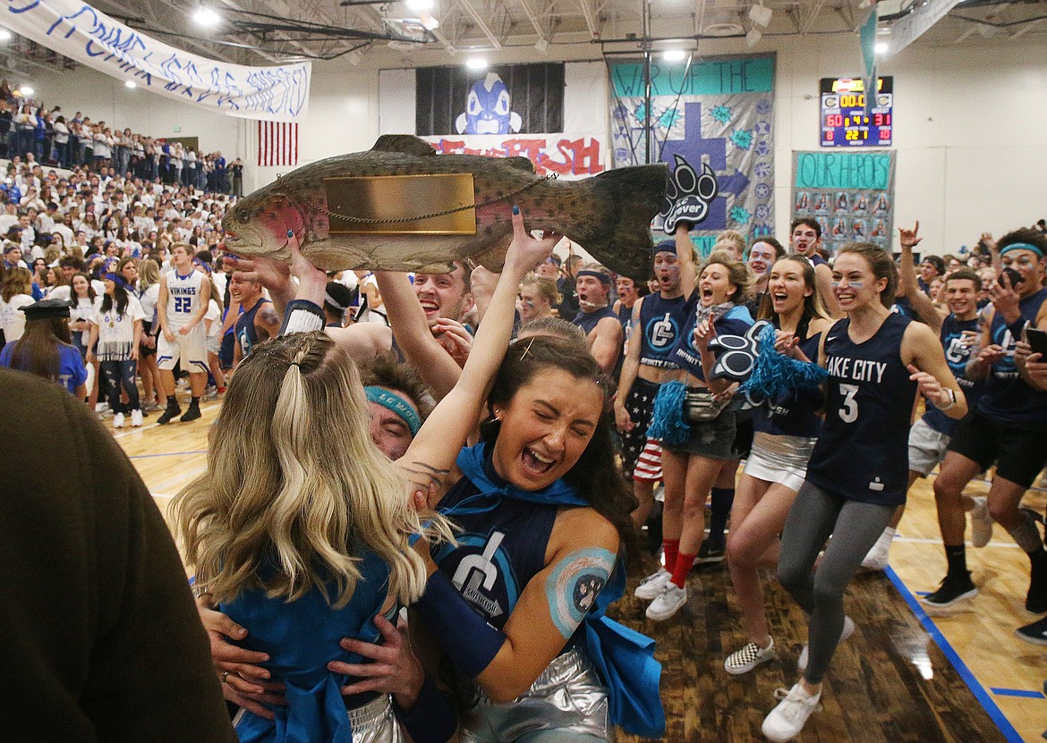 After the boys game, judges awarded the Fish to Lake City High, the ninth straight year the T-Wolves won the spirit competition.
