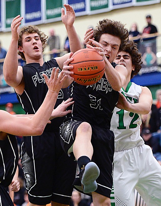 Flathead's Brett Thompson (31) pulls down a rebound against Glacier during a crosstown matchup at Glacier High School on Friday. (Casey Kreider/Daily Inter Lake)
