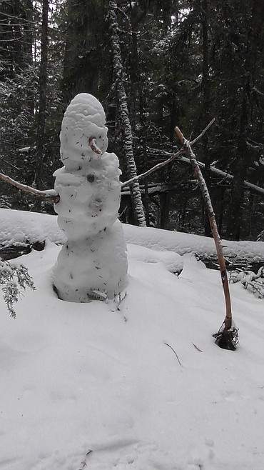 On the way back down, I saw a skiing snow man that two skiers had built. I never saw them, but the snowman was a pleasant surprise.