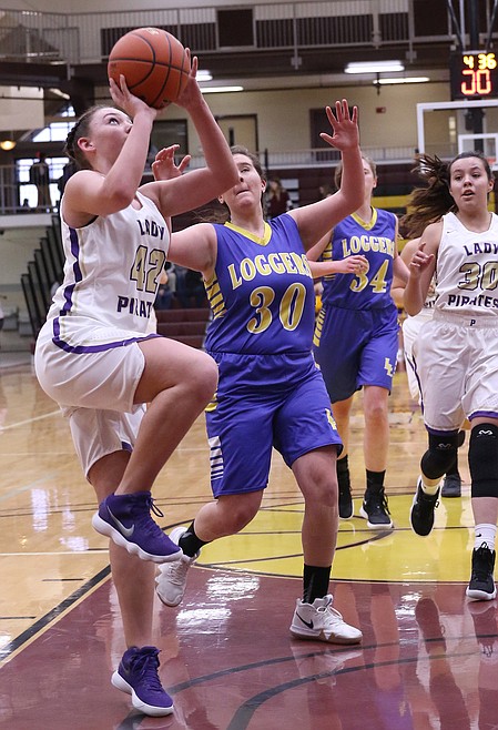 At Stevensville last Friday, the visiting Polson Lady Pirates climbed another rung on the scoring ladder by tallying their highest half scoring segment as well as their highest overall point total thus far this season. Mossy Kauley had her first varsity career dabble among double digits, while Karly Lawson and Sharmaine Zempel were within a basket of netting double figures as well.
