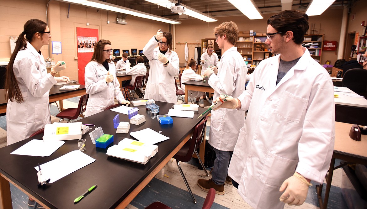 On Jan. 10 in the biomedical science classroom at Flathead, a chorus of clicks echoed as students wearing white, monogrammed lab coats and safety glasses adjusted micropipettes. In front of them were DNA samples on bowls of ice. Biomedicine is medical research or practice that applies biology and biochemistry principles.