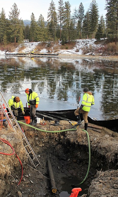 A professional diver from Washington plunged into the frigid Clark Fork waters on Monday, Jan. 14 to plug the break in the 6-inch sewage main. The pipe goes across the river and was buried four feet deep when installed around 1995, Jones said. Up until now, there hasn’t been any problems but speculation is that the high flood waters last spring exposed the pipe. Leaving in vulnerable to damage. Approximately 80 feet of pipe was exposed said Kurt Fossen, with Trenchless Solutions.