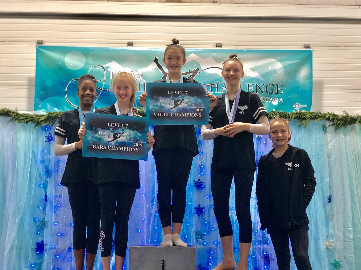 Technique Gymnastics traveled to Kalispell, Mont., for The Glacier Challenge. Technique Gymnastics took home the Glacier Challenge Award for Xcel which is awarded to the team with the highest All Around Average.