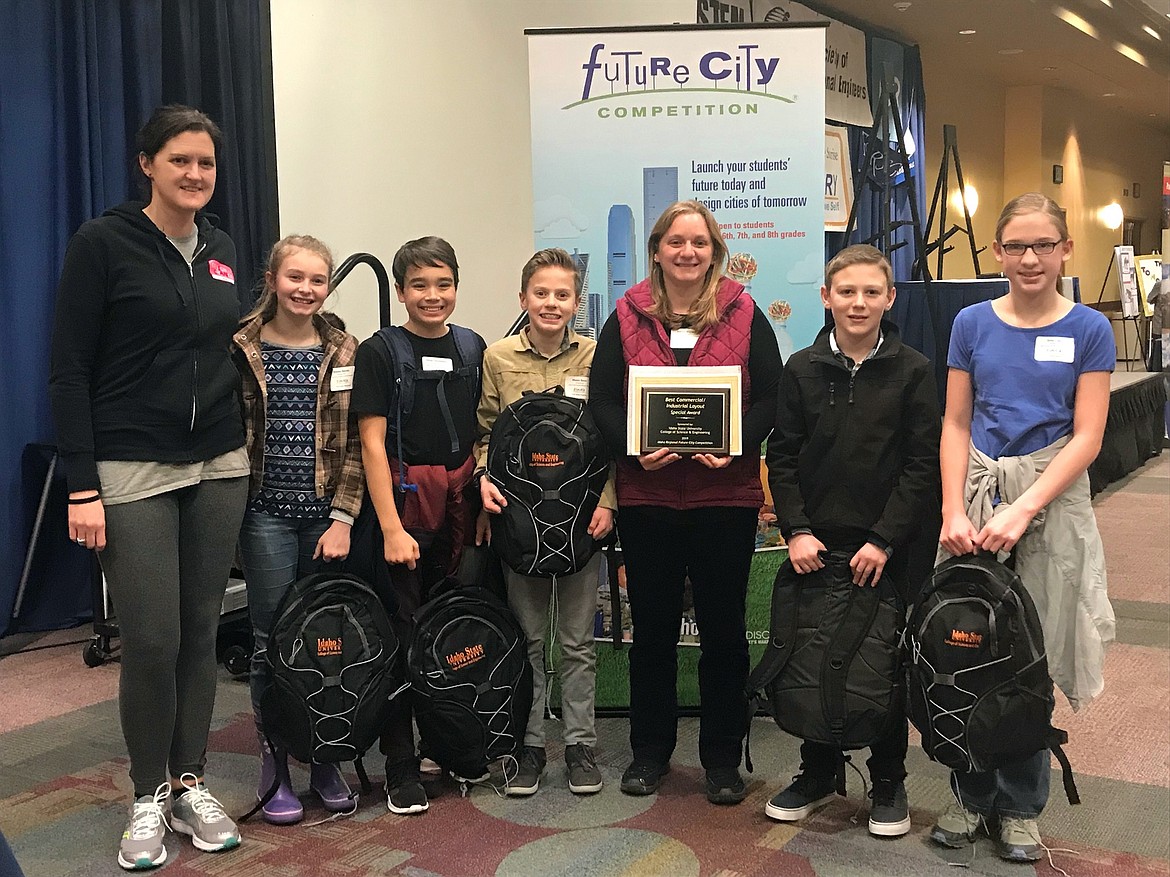 The creators of Granite City, which won an award at regionals for “Best Industrial/Commercial Layout,” were Bryce Tyburski, Mason Blaser, Ethan Christensen, Shaylee Benda and Zella Lopez. Fiona Macdonald, Elle Meneghini, Abi Miller and Payton built the city of Ecotopia.