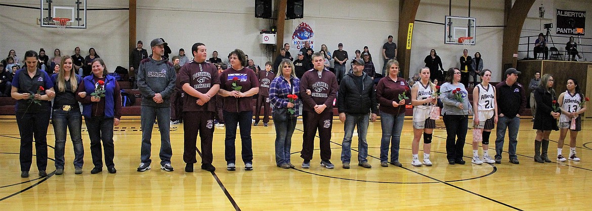It was Senior Night for the Clark Fork Mountain Cats in Alberton where they played Seeley-Swan. In between the girls and boys varsity game, seniors were escorted onto the basketball court by parents and relatives. The evening is to honor and thank the students and parents for all their hours of hard work and dedication contribution to sports, pep band and other school activities.