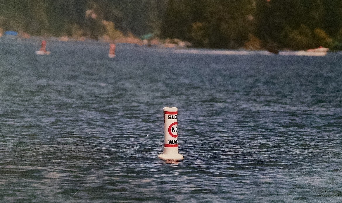 No-wake zones will be enforced all over the lake, not just in specific places where buoys are placed. The buoys will remain in place year-round.
