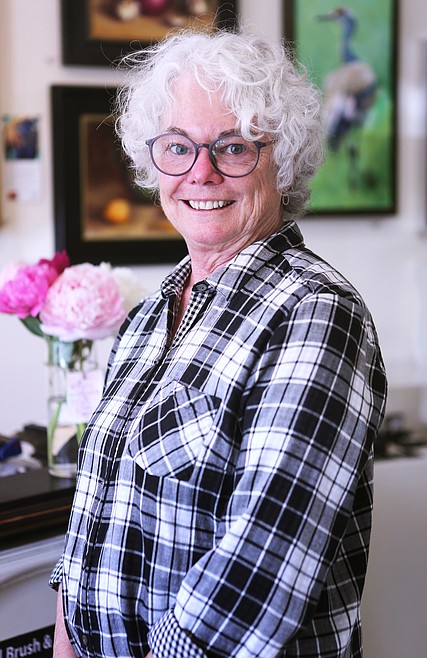 BIgfork artist Jill Gotschalk is pictured at the Persimmon Gallery in downtown Bigfork on June 19. She donated her time and talents last winter to paint the Bigfork Art and Cultural Center's street piano. She used colorful acrylic paints to create a floral theme, topped by a protective coating to protect the instrument from the elements. (Mackenzie Reiss/Daily Inter Lake)