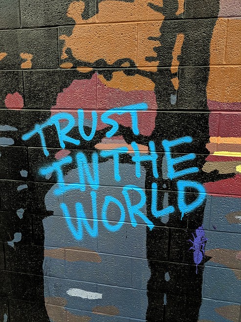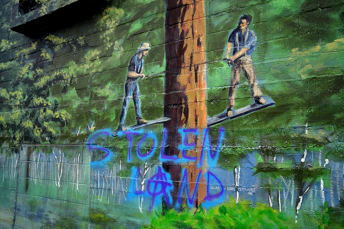 The graffiti included phrases such as “Stolen Land,” “Compassion” and “Trust the World.”