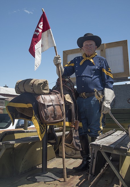 Although there was not a horse contingent in the parade, Ronan veteran Howard Haslam, dressed in 1870 Horse Cavalry blues, rode aboard a USMC Jeep carrying a display of the tack and gear worn and carried by the equines in the 19th century.