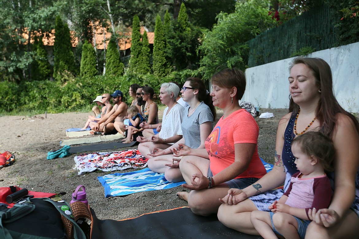The sky was just a little cloudy, the air a welcoming 80 degrees. A 9 mph breeze wafted. People gathered on Sanders Beach were stretching their bodies — then relaxing — enjoying the company of community and allowing the week’s tensions to drift away.