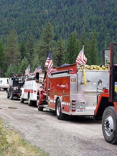 But come Fourth of July and the road is lined with cars and people all waving excitedly at the Hall Mountain fire trucks, Idaho Department of Lands, U.S. Forest Service, complete with Smokey Bear and the fun variety of others that join in the parade.