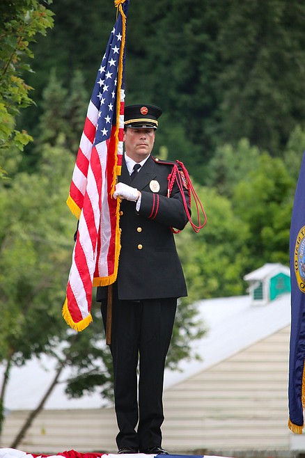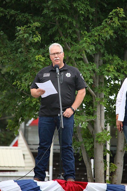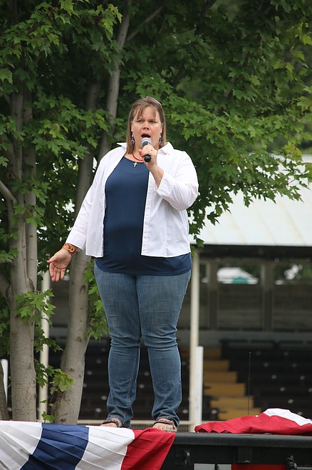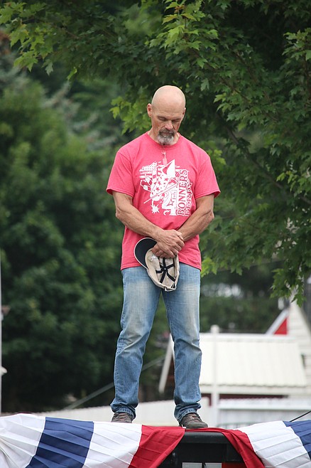 Boundary County Chaplain Len Pine was among the parade goers, but he was far from done. After the parade ended, the opening ceremony took place. Pine was again part of the celebration as part of the Boundary County Fire Service Honor Guard, which presented the colors. It was followed by an invocation by Boundary County Sheriff Dave Kramer. Leonard took to the stage next with the Pledge of Allegiance, followed by Bonners Ferry Rotary Club President Kristie Campbell singing the national anthem.