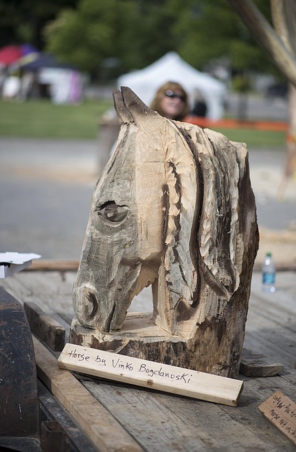 Local carver Jeff Adamson won second place with his carving “Spirit of the Woods,” and Vinko Bogdanoski, from Macedonia, took third with his carving of two eagles in flight.