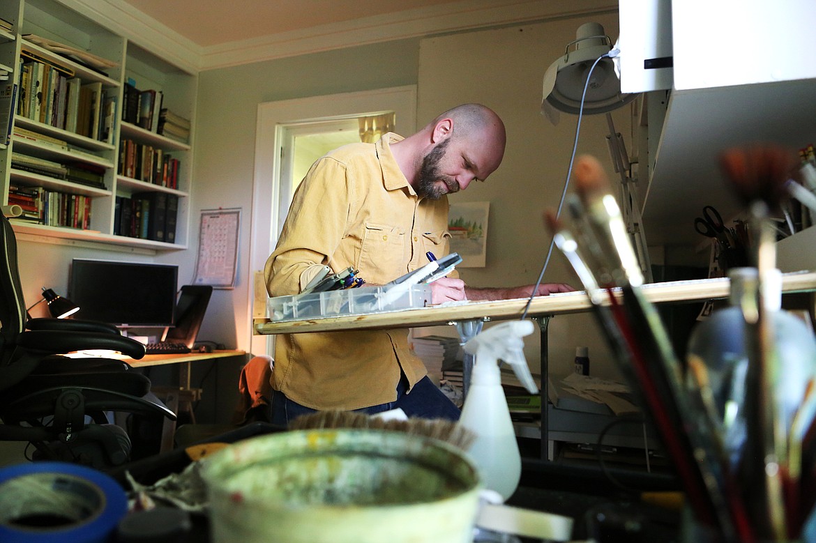 Fetter-Vorm works on an illustration in his Somers studio. (Mackenzie Reiss/Daily Inter Lake)