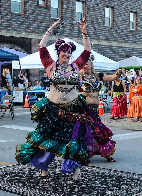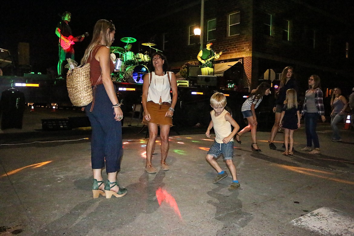 A VIP event took place at Riverside Auto Center and belly dancers graced the street in front of the stage. As night approached, Area 56 took to the stage and the street dance kicked off around 9 p.m. The first to brave the dance area was the younger crowd. Children twirled in the colored lights as the adults stood back and cheered them on. As the night progressed, more and more people crowded the dance area, adults joining in with the children.