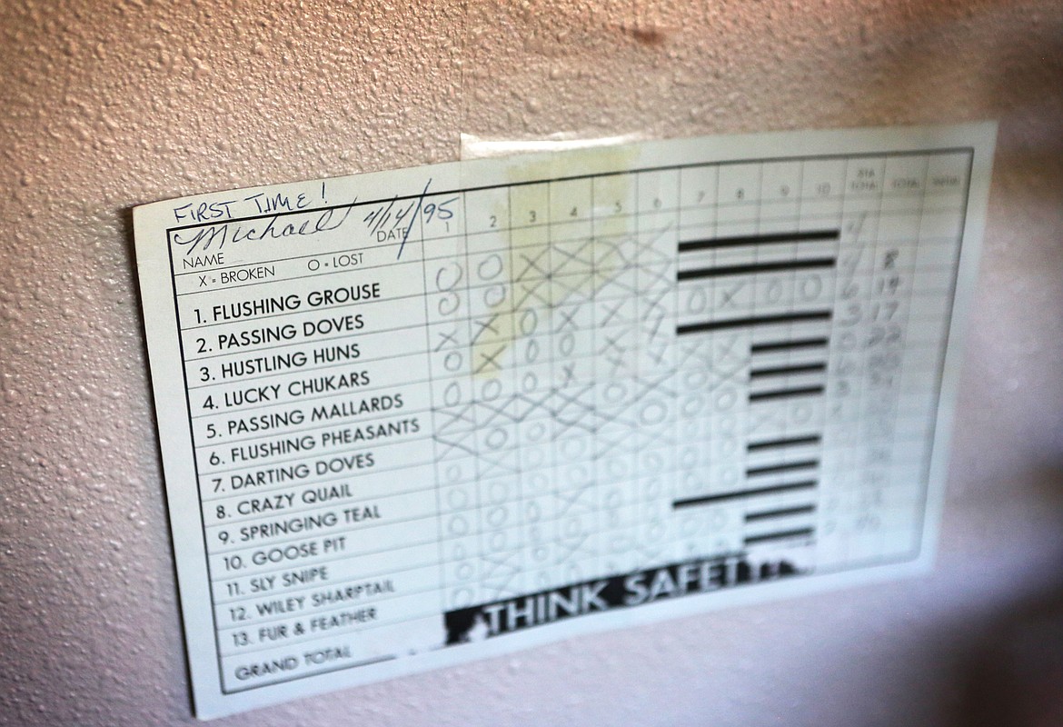 “I still have my first [scorecard], the very first card. I shot 100 targets and I broke 44,” he recalled. The card in question is pinned to the wall behind his award table to this day.