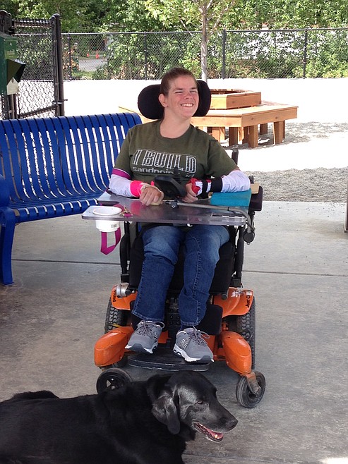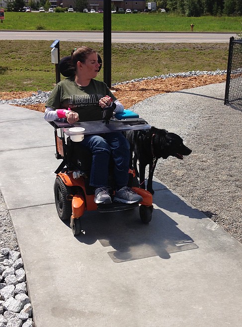 The Ponderay Dog Park is open for business and Caitlin Bayles was the first to try out the ADA accessibility of the area’s first off-leash dog park last week, along with her elderly dog Diesel.
