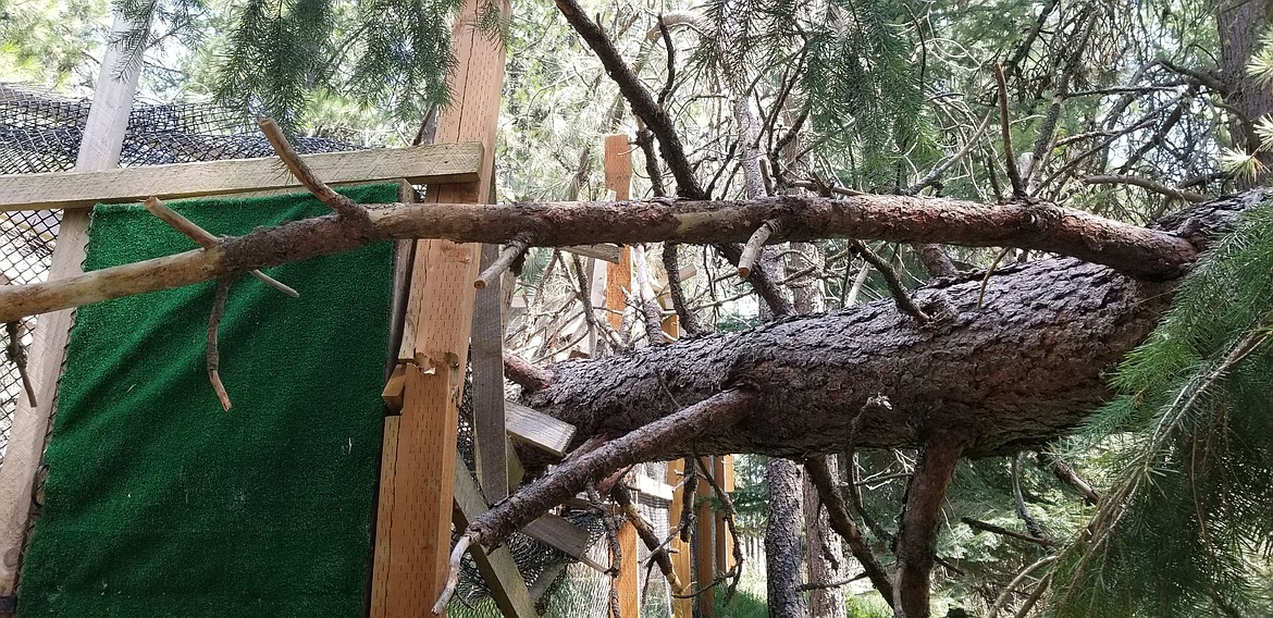 Mya Jinright, a Birds of Prey intern and certified veterinary technician, said winds toppled an 80-foot tree onto a great horned owl aviary, which released or killed three owls that were recuperating and the facility’s foster owl, a valuable resident of the aviary.