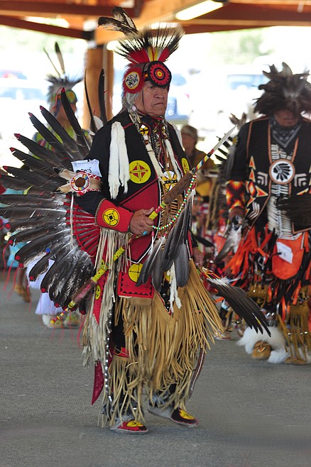 Some of the regalia worn by the dancers was traditional—buckskin and beading, feather bustles, fans, hats and headdresses—while others wore brightly colored clothing and headgear. The kids and young people danced energetically while the older folks rounded the dance area more softly and peacefully. Many families danced together while friends caught up with one another as they stepped to the rhythm of the drums. The joy of the celebration was evident in many faces while others had an expression of peaceful tranquility.
