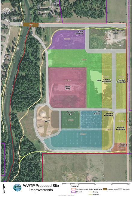 The city’s new wastewater treatment plant is expected to occupy just over 3 acres on the west side of the property with an 8 acre sludge drying area to the north.