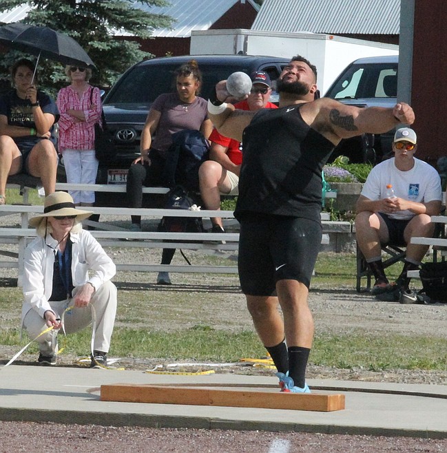 Participants competed in the hammer throw and shot put on Saturday, with divisions for high school (boys, girls) and college and post-collegiate (men’s and women’s). Roughly 400 attended the event, held on 10 acres owned by throws guru Bart Templeman.