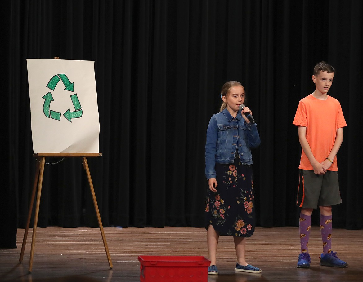 The Design for Change students settled on three topics: Charlene Hitchock’s second grade class tackled reducing food waste, Dickinson’s fifth and sixth graders researched local poverty and homelessness and Dickinson’s Design for Change alumni — in tandem with their church’s small group — started @7BLove_Project, a local social media initiative promoting kindness and inclusiveness via the hashtag #YouMatter. The presentations on Wednesday included a question-and-answer panel for the audience. Additionally, in a lighthearted move, one of the groups sang a recycling song written to the tune of viral hit “Baby Shark.” Yet the commonalities between all three presentations were that they followed the same four-step “feel-imagine-do-share” research process and each presentation was completely student-made.