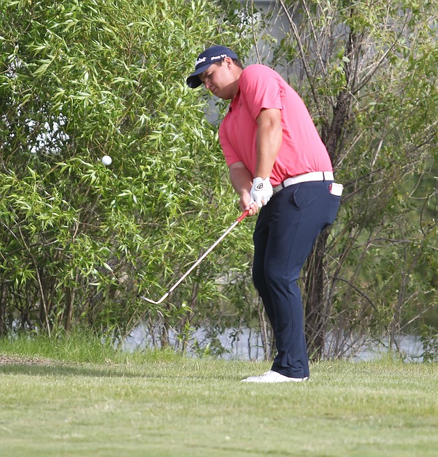 Derek Bayley of Rathdrum chips on the 14th hole Saturday during the third round of the Lilac City Invitational.