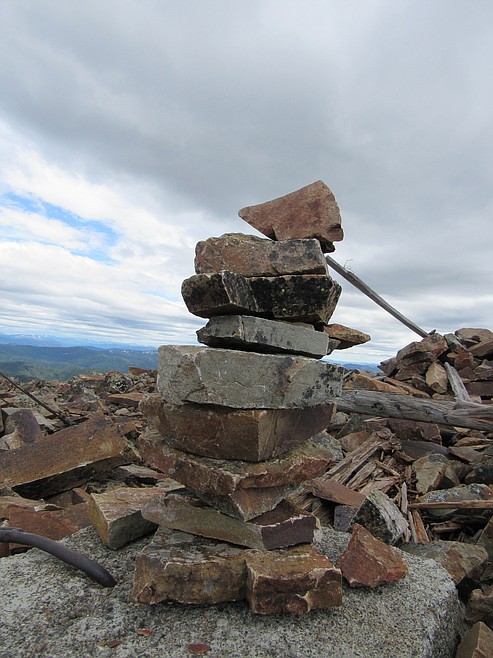 Finally, finding the need for “BF and I”, I charged up the last quarter-mile of trail to the true summit, knowing that if I slowed down, I would be cold and miserable. I turned up the collar of my shirt and trudged forward and up, over boulders and snowfields, past groups of hikers, all wearing winter coats and taking selfies, to the summit of North Chilco Peak and the remnants of the old fire lookout which once worked the almost-alpine summit.
