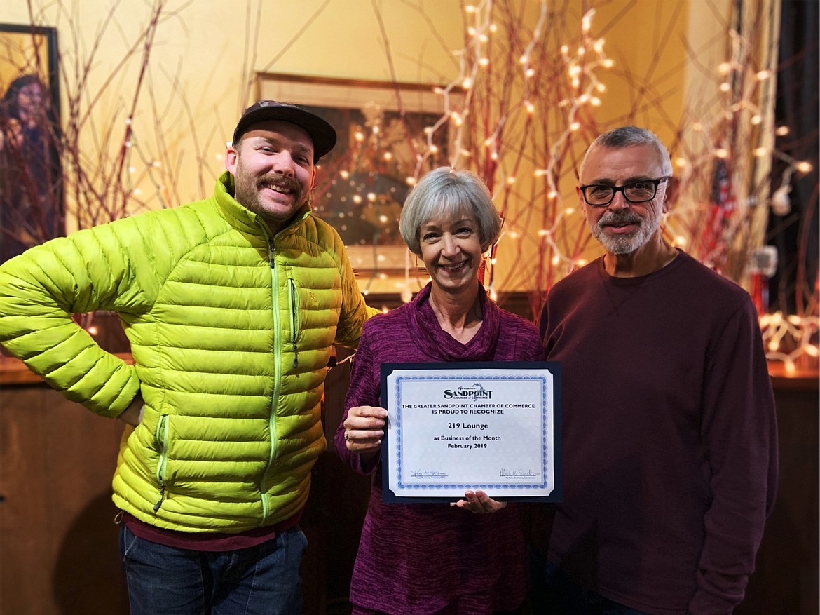 “Please join us in congratulating the February Business of the Month, 219 Lounge,” chamber officials said. “Thank you, Mel, Claudia, and the 219 staff, for keeping Sandpoint’s oldest bar thriving and for your continued generosity to our community.”