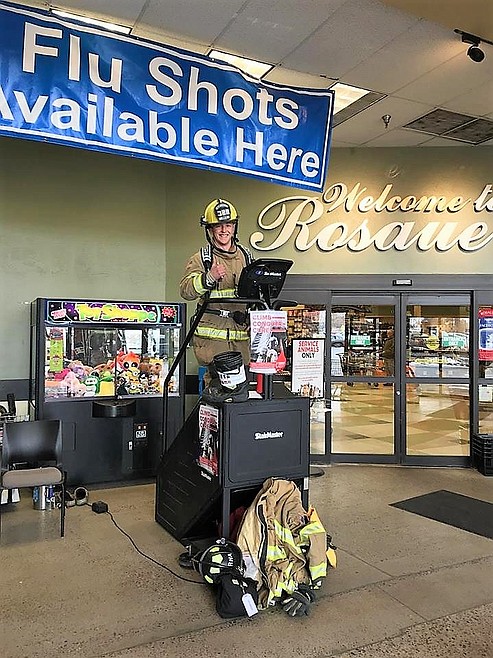 WHILE CLIMBING the stairs at Rosauers, Lapinski and Sporna wore 60 pounds of firefighting gear. The purpose was to raise money for the charity but also to get in shape for the 28th Annual LLS Firefighter Stairclimb held in Seattle, Wash. The event is held March 10 and attracts firefighters from all over the world.