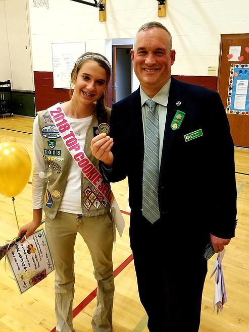 The Post Falls High School junior and Troop 3008 Girl Scout reigned as the record-breaking, top Girl Scouts of Eastern Washington and Northern Idaho cookie saleswoman for the 2018 season, with a grand total of 5,600 boxes sold — more than 2,000 more boxes than the runner-up — and she is returning with even more gusto this year, having already sold 888 presale boxes.