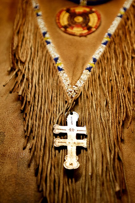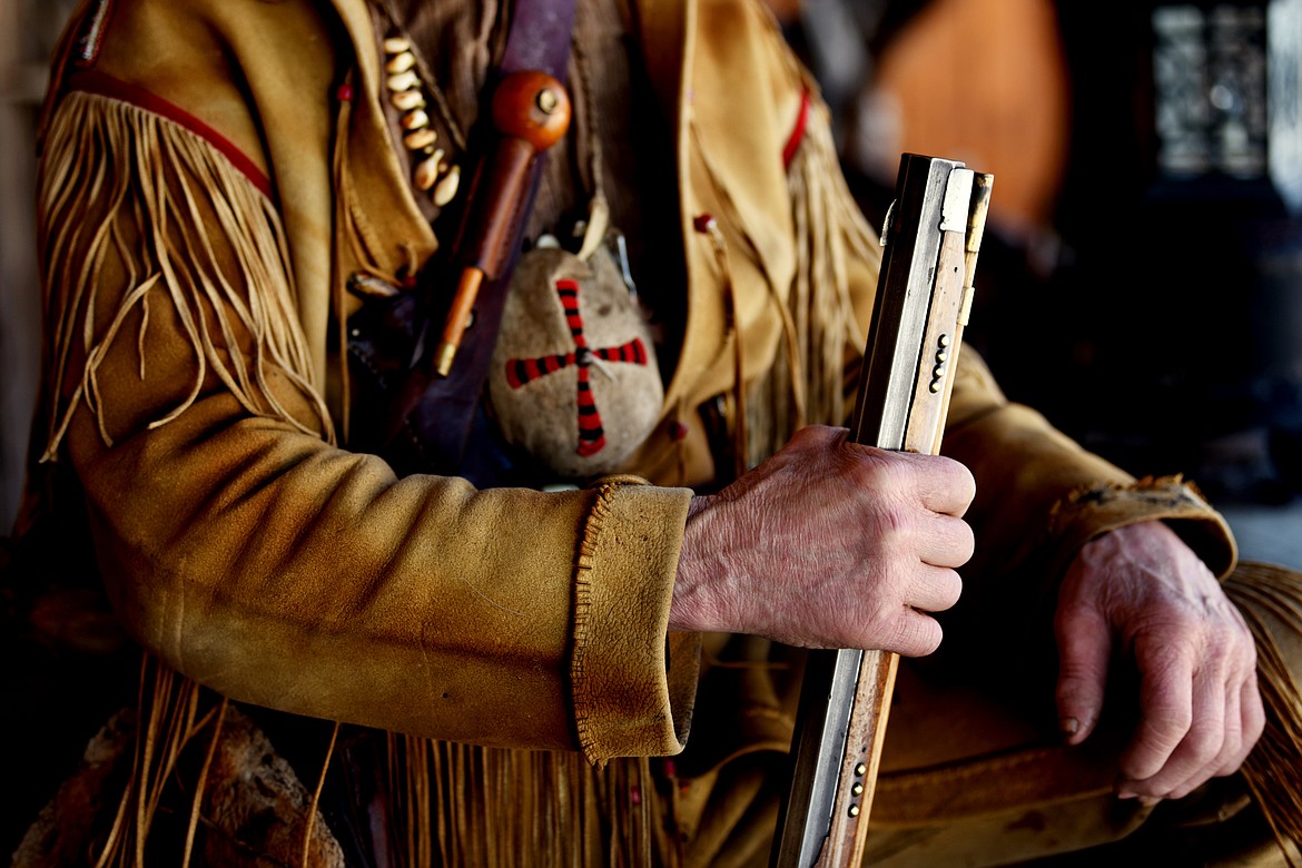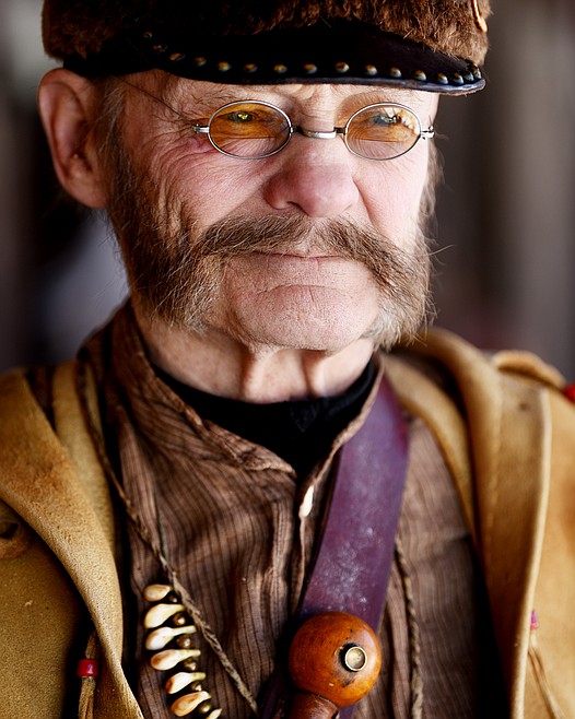 During a recent tour, Sorensen wore an elk and buckskin fringed coat, buckskin pants, elk-hide moccasins and a handmade linen shirt with bone buttons. He wore a beaver hat and from his belt hung a telescope, a hunting knife and a shooting pouch for his flintlock.