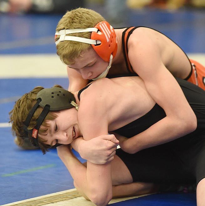 In the Middle division, Jackson Green was first at 166 pounds, and Kaleb Pearce won the 224-pound title. Green shut out Trent Rutherford of Arlee in his title match. In round-robin matches in his three-wrestler class, Pearce won by fall over Jayden Friesen of Bonner and Cody Vergeront of Evergreen.