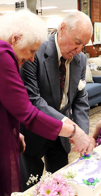 An employee who had worked as a wedding planner set up a spot in the store, pulling items from around the store to make it a special spot and Shapiro ran over to Yoke’s and got a wedding cake and some sparkling cider to help celebrate. A wedding bouquet and boutonnière also were purchased once they knew what colors Doris and Glenn wanted.