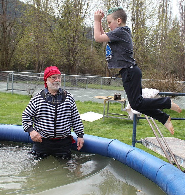 Snow and wind didn’t stop Mineral County residents from “walking the plank” into freezing water to raise money for a new pool in Superior on Sunday, April 28. The Mineral County Community Foundation (MCCF) raised $4,800 during their Walk the Plank fundraiser at Eva Horning Park. The funds will benefit reconstructing Superior’s 60-year-old-public pool, which closed in summer 2018 due to leaks. The MCCF formed a subcommittee called Pool for the Park last summer after the pool closed. “We expect the total cost of the project to be at least $1.5 million, but we won’t know the exact number until we get a firm cost estimate,” committee member Angie Hopwood said. After the Walk the Plank fundraiser, the committee has raised a total of $40,000. The fundraiser events included walking the plank into a kiddie pool, a bake sale, face painting and other games for the public to enjoy. Participants received a free T-shirt if they raised $100, and are encouraged to get sponsors and challenge others to raise money. Superior Color and Lumber donated materials and volunteers helped out at the fundraiser. Hopwood says raising money for the pool is their main goal, but they also want to create more events like this for the community to enjoy. “We’re trying to bring up our community a little bit,” Hopwood said. The committee has already completed Phase I, where the goal was raising enough money to hire an architect and they are now in Phase II, meaning the committee can apply for grants. MCCF hopes to complete pool construction in Phase III by 2023. “We’re optimistic,” Hopwood said. The next fundraiser will be Bingo and BBQ on Friday, June 7 at Superior Elementary School.