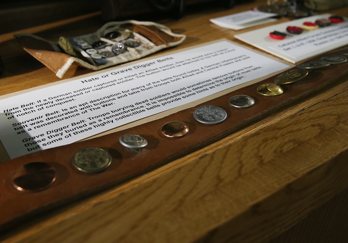 One of the items on display at the Post Falls Library is a “hate belt,” a highly collectible relic from World War I. If a German soldier captured or killed an Allied soldier, Kincaid said, he would often save a button and attach it to his belt as a kind of souvenir.
