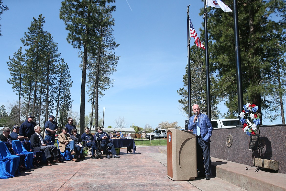 POST FALLS — Old Glory and the flags of the U.S. military branches gently waved in the breeze as the warm Saturday morning sun beamed on Evergreen Cemetery in Post Falls.