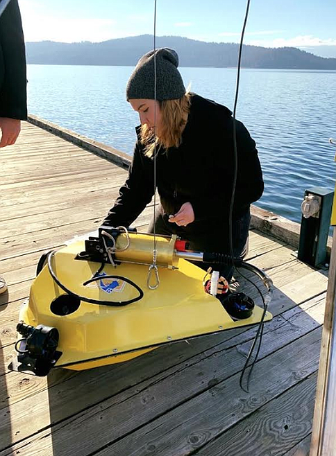 Through a 20-hour-per-week professor-mentor program and the wintertime donation from 360 Fitness for pool time, Ward has worked with three drones — a 50-pound vehicle nicknamed Catfish, a 25-pound drone named Sunfish and the smallest in the fleet, nicknamed Minnow and currently sitting in her bathtub — to measure the health of Lake Coeur d’Alene’s waters. Her master’s work will continue that research.